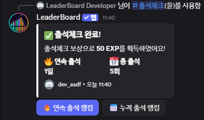 출석 초기화는 매일 자정(KST) 기준이에요.