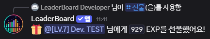 다른 유저에게 내 경험치를 선물할 수 있어요.